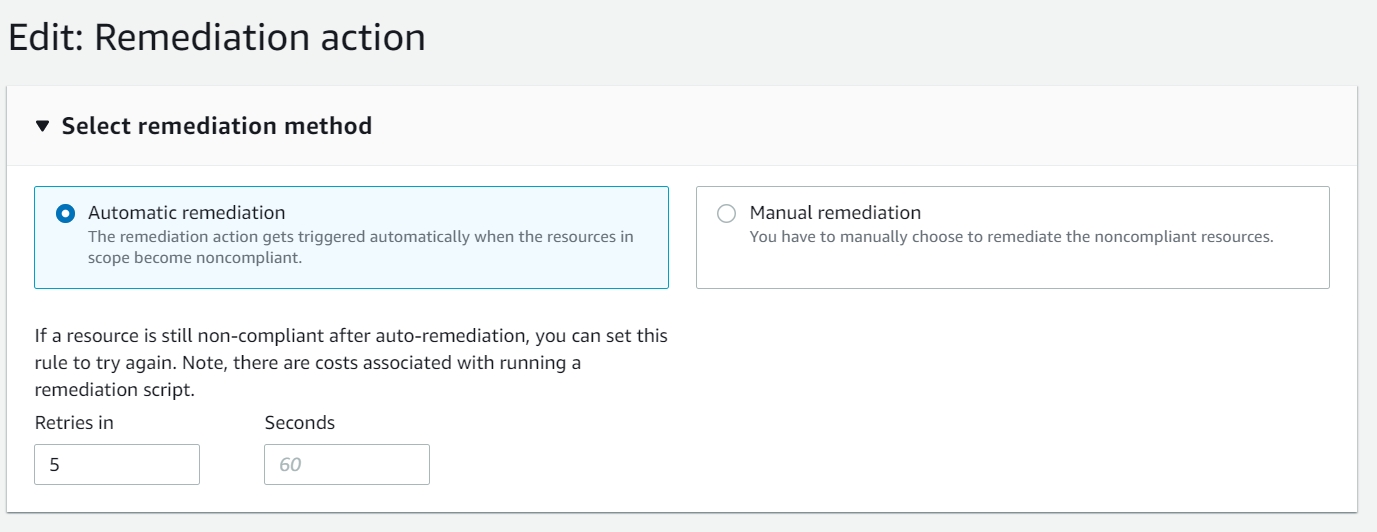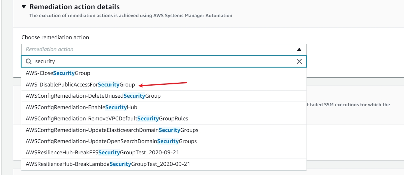 4.3 选择补救动作为 AWS-DisablePublicAccessForSecurityGroup