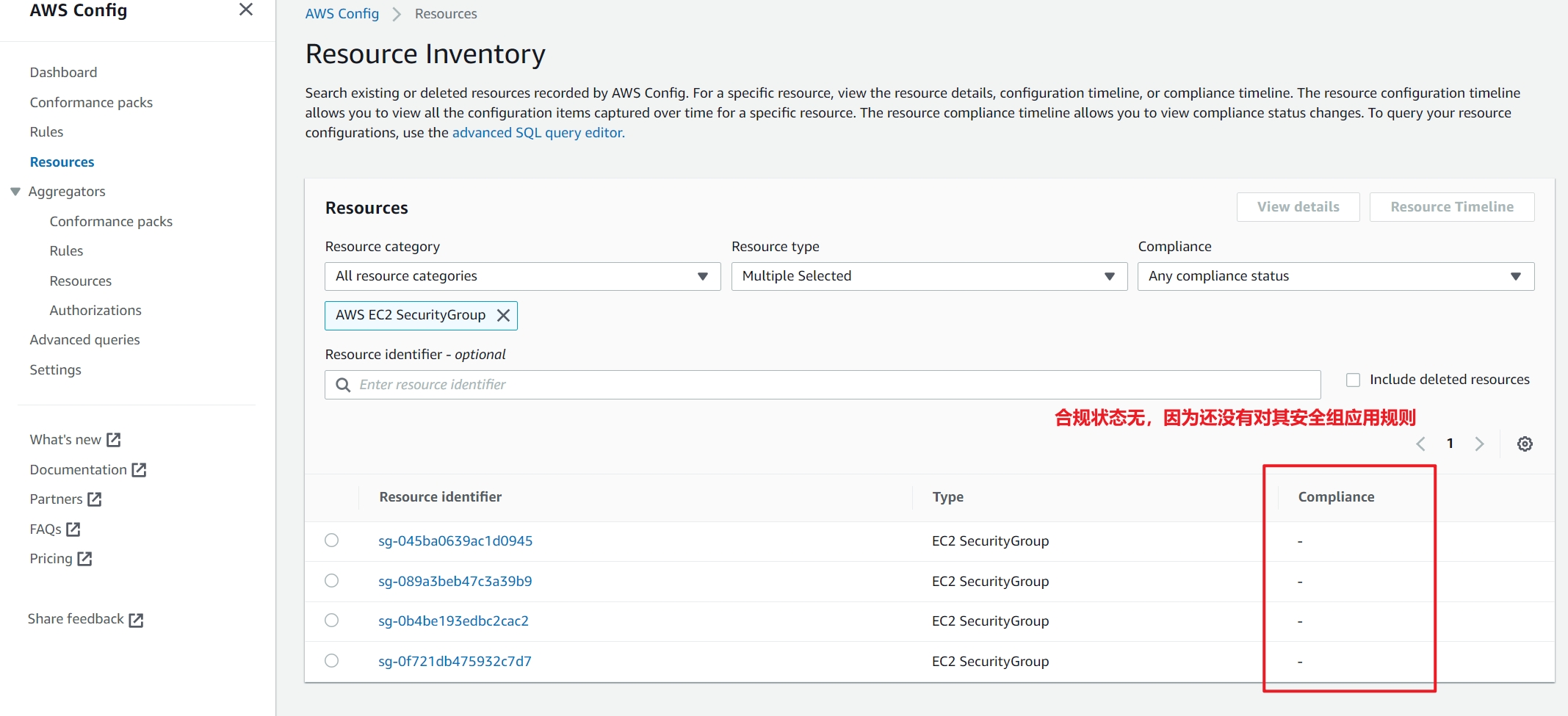 sg-0863d82aa8bcf75a1 - compliance-sg 不合规了