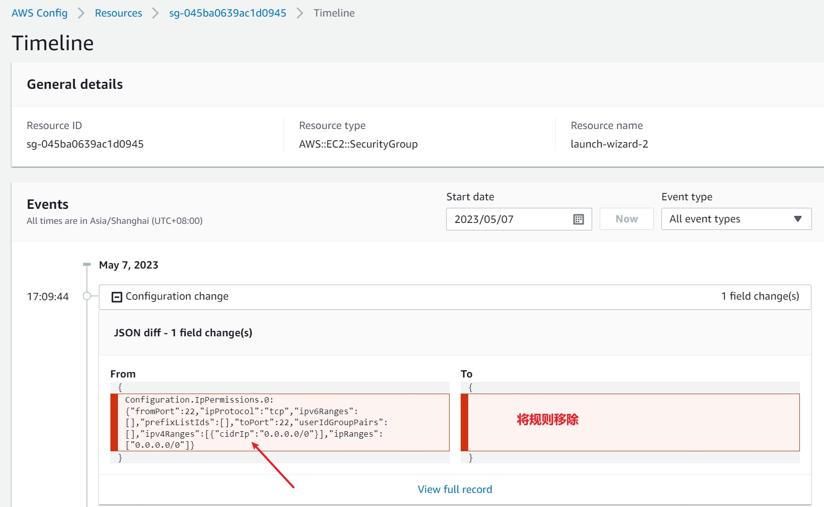 5.3 Tileline 检查 Events 可以看到 ssh 规则被移除
